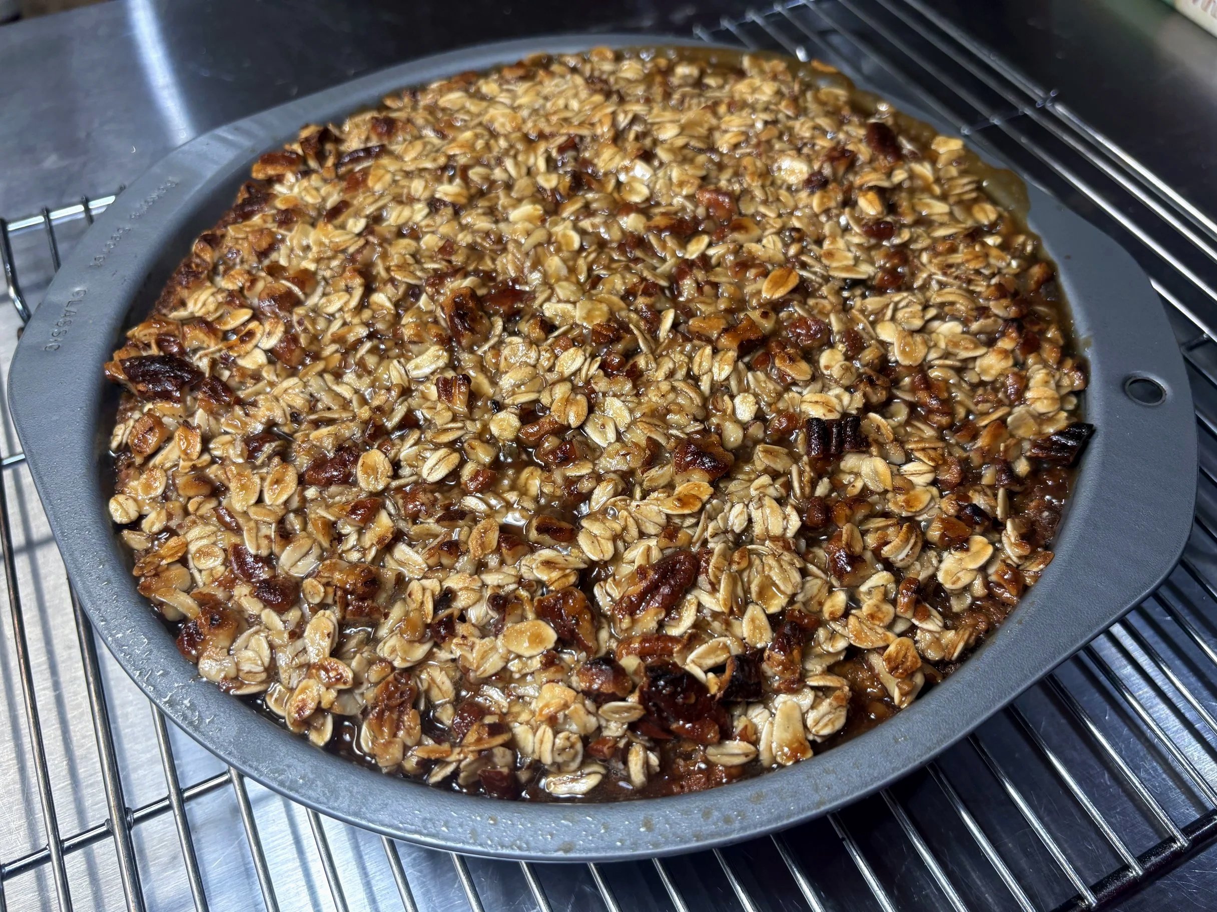 The making of this confection began with soaking old-fashioned oats in boiling water, butter, and milk to soften them up and hold moisture—you see where this is going?